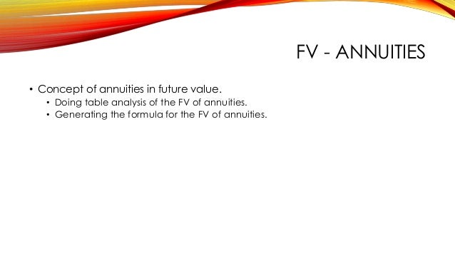Future Value Annuities: Chapter 10.1 l) Future Value Annuities l. Instead of depositing one lump sum, waiting for compound interest to increase the value, and ... Return Document