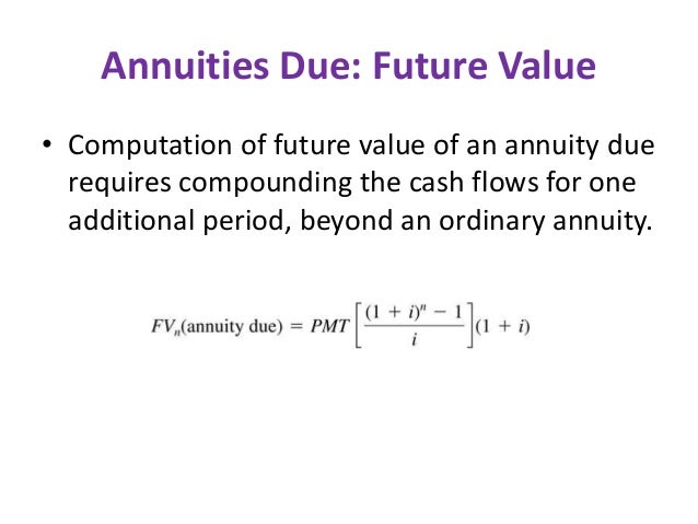 Useful for distinguishing between ordinary annuities and annuities due. This usage is intended to explain why the adjustment of factors from Table 6-3 is done the way it is when the problem involves the future amount of an annuity due. ... Retrieve Full Source