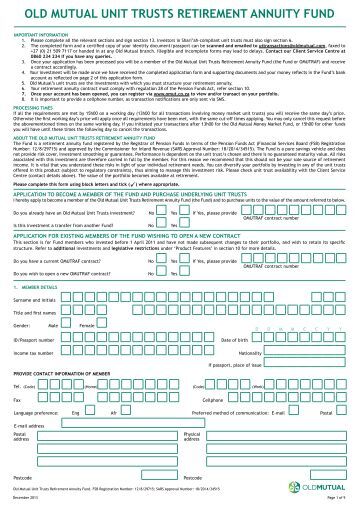 The Fairbairn Capital Retirement Annuity Fund offers the member vehicle with access to a wide range of unit trusts, including the SYm|mETRY Multi-manager Unit Trust Funds and the Old Mutual Employee Benefits * Transfers from provident funds to retirement annuities are generally not ... Return Doc