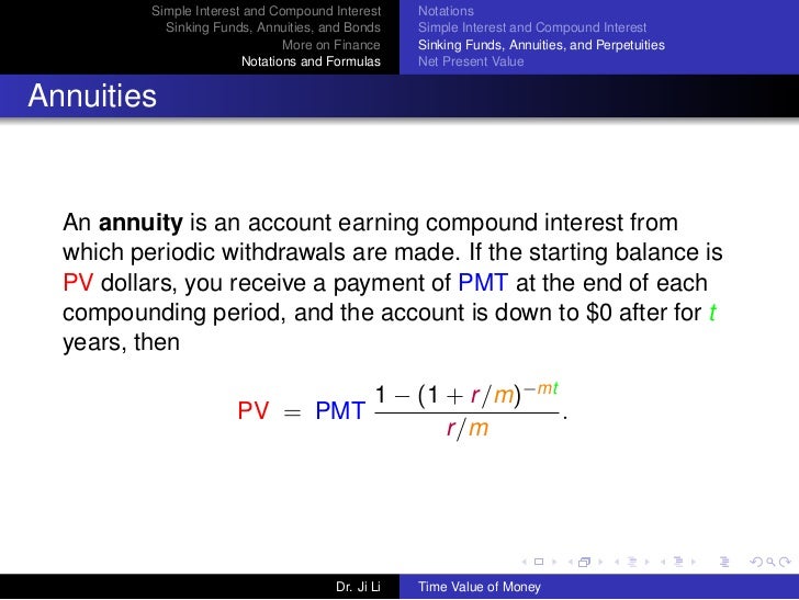 Present and future values of annuities 3. Perpetuities and deferred annuities 4. • Consider an annuity with payments of 1 unit each, made at the end of every year for n years. • This kind of annuity is called an the simple-interest method or other accumulation schemes for which ... Read Content