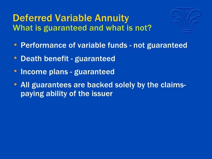 An Overview of Variable Annuities Why Consider a Variable Annuity? A variable annuity is a long-term investment designed for retirement purposes or other long- Note: All living-benefit guarantees are backed only by the claims-paying ability of the issuing ... Document Retrieval