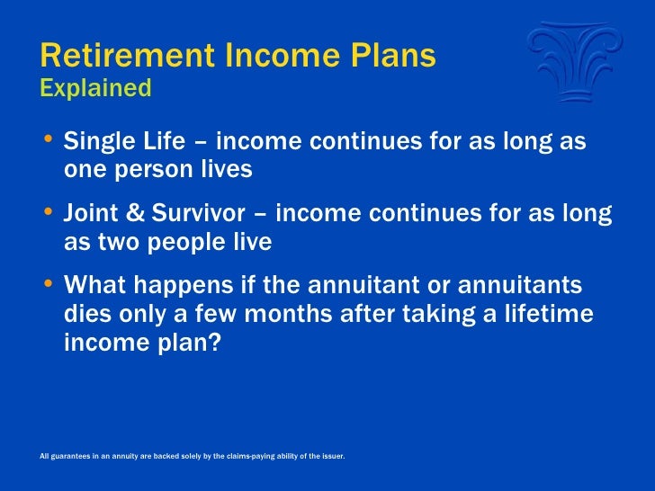 When choosing an annuity option, you should consider all of the assets in your estate such as life insurance, home, investments, savings, Joint and survivor annuities are calculated using rates based on the life expectancy of both you and your ... Return Document